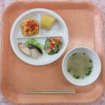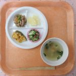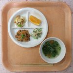 | 11 | 12 | 13 ポークチャップ、炒り豆腐、納豆サラダ、さんとう菜の味噌汁、オレンジ |