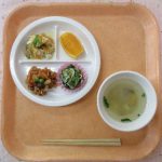 | 7 | 8 ポークチャップ、炒り豆腐、きゅうりとちりめんの酢の物、厚揚げともやしの味噌汁、オレンジ |