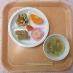| 4 | 5 松風焼き、大豆の五目煮、紅白なます、けんちん汁、みかん |