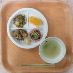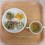 15 16鶏肉の香味ソースかけ、高野豆腐の卵とじ、スパゲッティサラダ、しめじと厚揚げの味噌汁、オレンジ 17白身魚のフライ、牛肉入りきんぴらごぼう、カニかまときゅうりのサラダ、大根となすの味噌汁、みかん 18牛肉のデミグラスソース炒め、かぼちゃ入りさつま揚げ、きゅりとわかめの酢の物、そうめんのすまし汁、黄桃 19本日は”愛情弁当の日”のため、給食はお休みでした。 20チキン南蛮、大豆の五目煮、白菜ともやしのごま和え、豆腐と小松菜の味噌汁、日向夏 21焼きビーフン、かぼちゃのそぼろあんかけ、ひじきサラダ、コンソメスープ、パイン