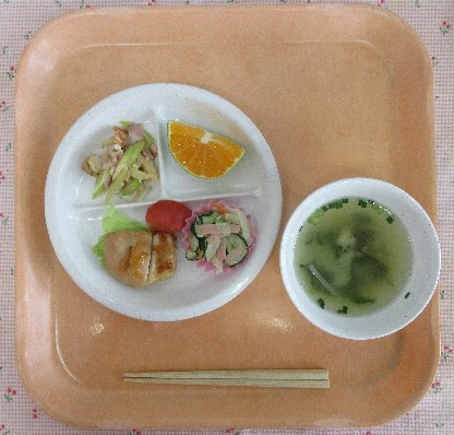 - ※献立表には載せていませんが盛り付け時は、キャベツ・ブロッコリー・トマト・枝豆・とうもろこし等を添え野菜として使用しています。