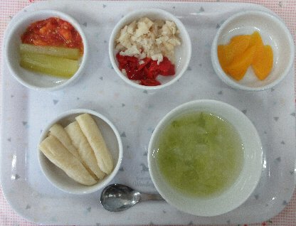 お子さまの発達状態(咀嚼状態)に応じて、適切な内容や形状および量を準備しています。 本日の離乳食は1種類です。