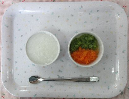 お子さまの発達状態(咀嚼状態)に応じて、適切な内容や形状および量を準備しています。 本日の離乳食は1種類です。