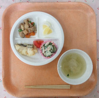 - ※献立表には載せていませんが盛り付け時は、キャベツ・ブロッコリー・トマト・枝豆・とうもろこし等を添え野菜として使用しています。
