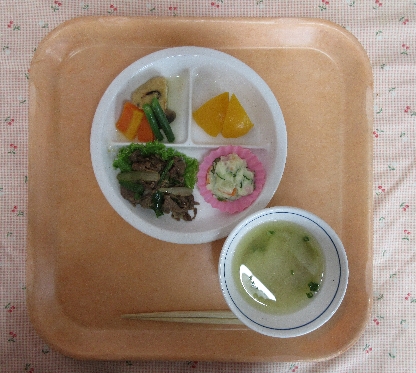 - ※献立表には載せていませんが盛り付け時は、キャベツ・ブロッコリー・トマト・枝豆・とうもろこし等を添え野菜として使用しています。